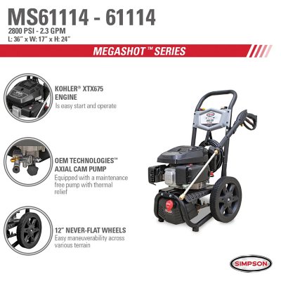 Simpson Megashot 2800 Psi At 2 3 Gpm Kohler Xtx675 Cold Water Pressure Washer Sam S Club